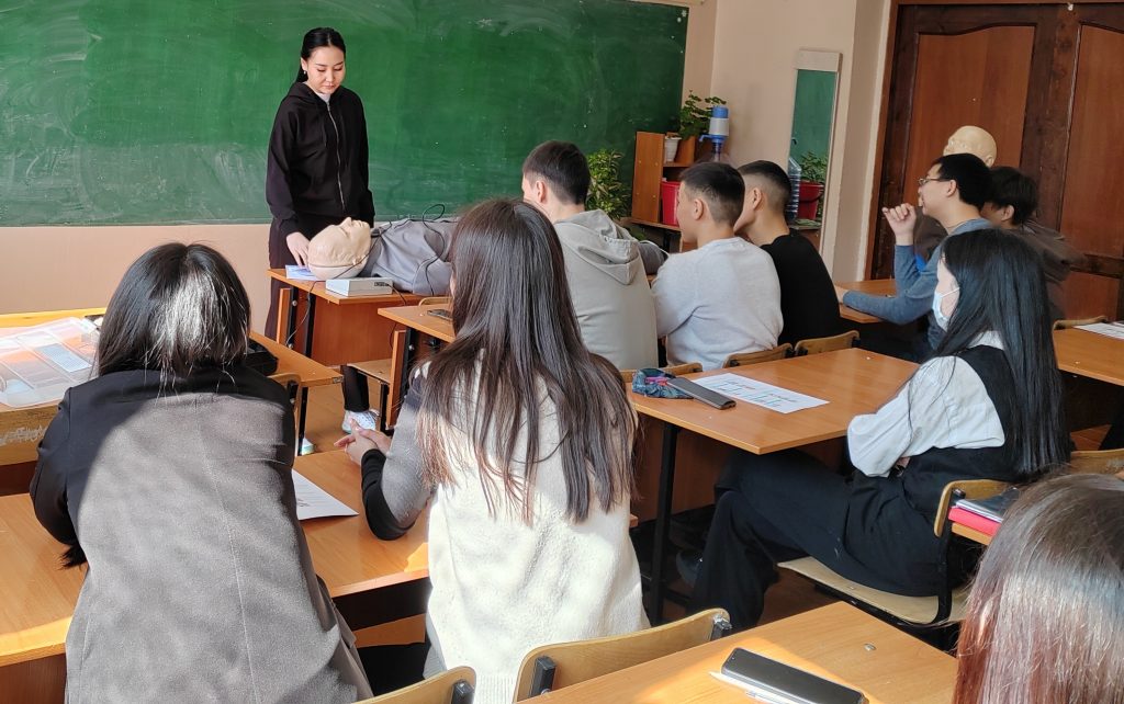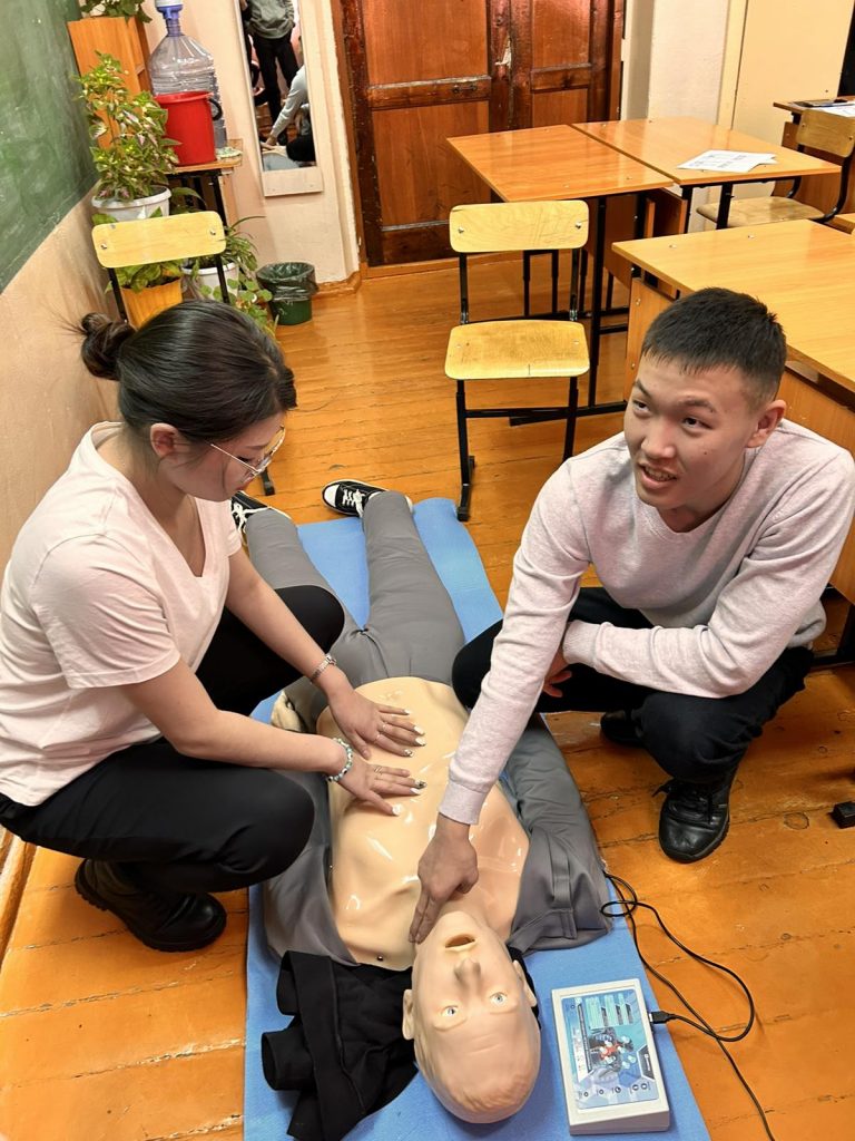 Херелмаа Хен-оол продемонстрировала приемы оказания первой помощи на манекен-тренажерах, представляющих различные ситуации — от сердечно-легочной реанимации до приема Геймлиха. Особенно ученикам запомнилась реалистичность демонстрационных средств. Для учащихся была предоставлена возможность самостоятельно отработать навыки оказания первой помощи на манекенах, что позволило им почувствовать себя настоящими спасателями. В конце занятия ученики задали интересующие их вопросы и получили на них полные ответы.